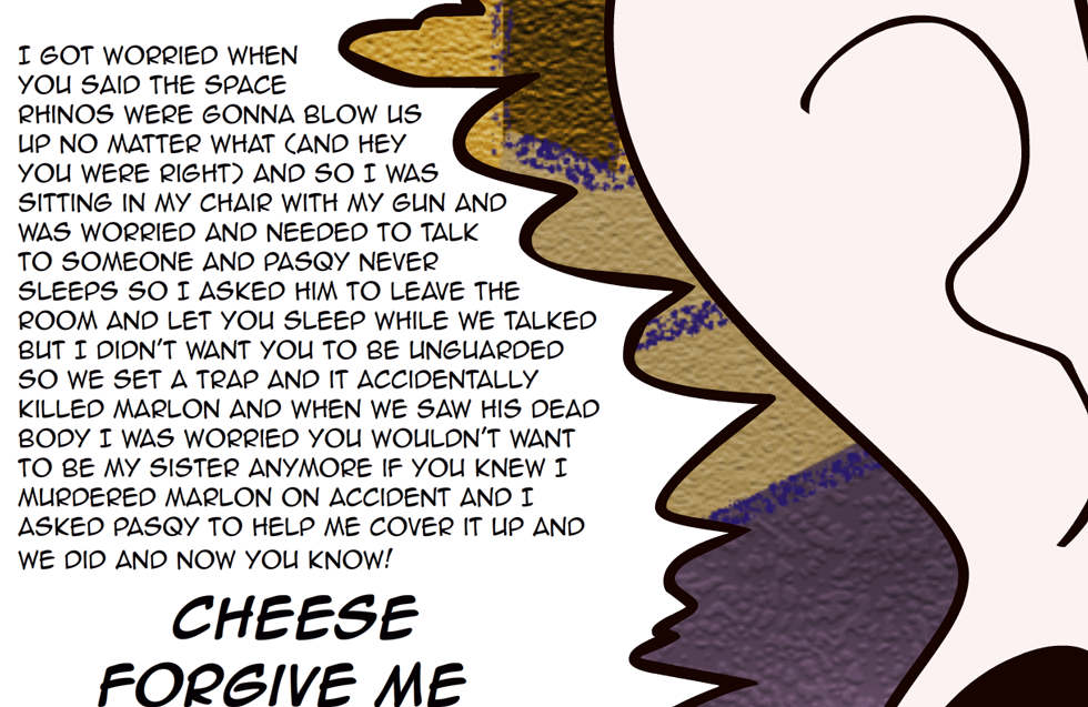 Shshhshshh… I’m sorry. It was a joke. I was relating too much with Pasqualo, and it hit me hard to see him go back to the old Pasqualo. I love the comic, and I love you.